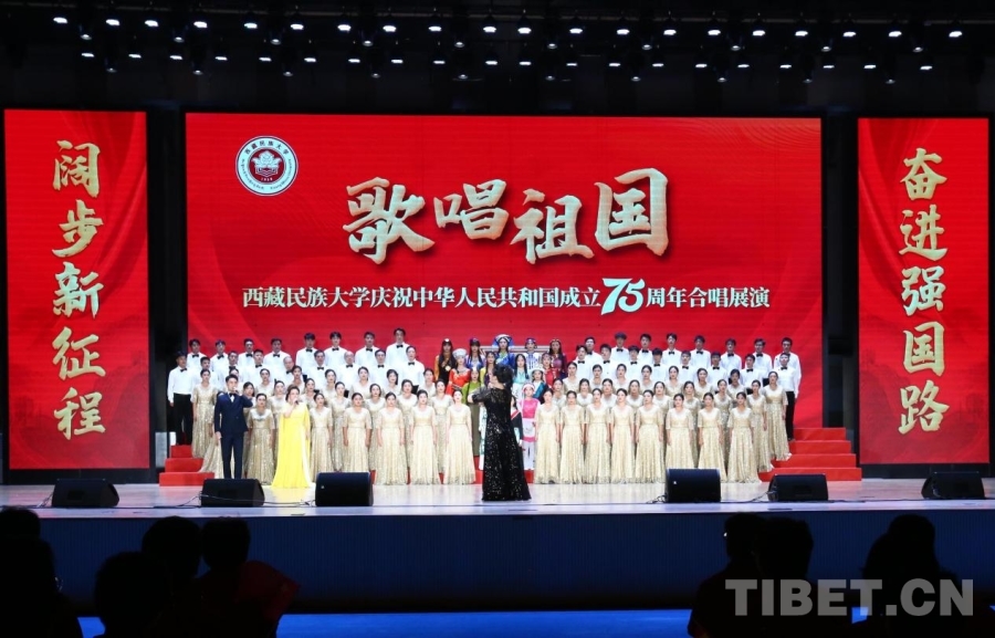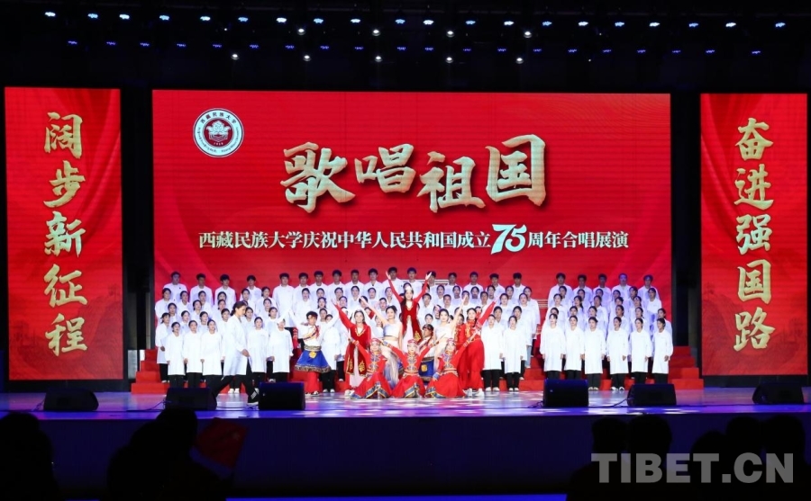 圖為西藏民族大學(xué)慶祝中華人民共和國(guó)成立75周年合唱展演活動(dòng)現(xiàn)場(chǎng)