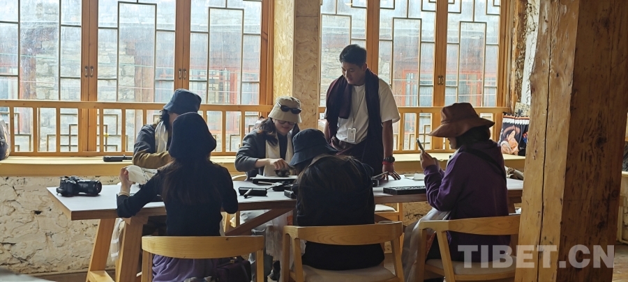 圖為游客在千戶藏寨學習拓印