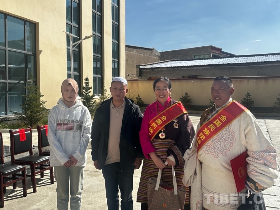 圖為全國(guó)民族團(tuán)結(jié)進(jìn)步模范個(gè)人獲得者次仁拉姆