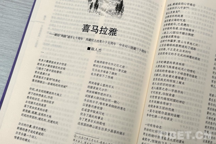 從地理喜馬拉雅到“千行詩”《喜馬拉雅》,第八屆魯迅文學(xué)獎獲得者、西藏自治區(qū)文聯(lián)副主席,同時也是本詩創(chuàng)作者陳人杰感慨萬千。創(chuàng)作這首凝練了“兩路”通車70周年、西藏民主改革65周年、中央對口援藏30周年歷史性事件,涵蓋了西藏前世今生到新時代西藏變化的長詩,并非易事。歷經(jīng)文思淤堵、無從下筆,到靈光乍現(xiàn)、一氣呵成,陳人杰表示:“《喜馬拉雅》的出爐,是天時地利人和,是新時代新征程的使然,是西藏的饋贈,是眾水般心靈澄澈的力量匯聚起的浩蕩的贊歌。”