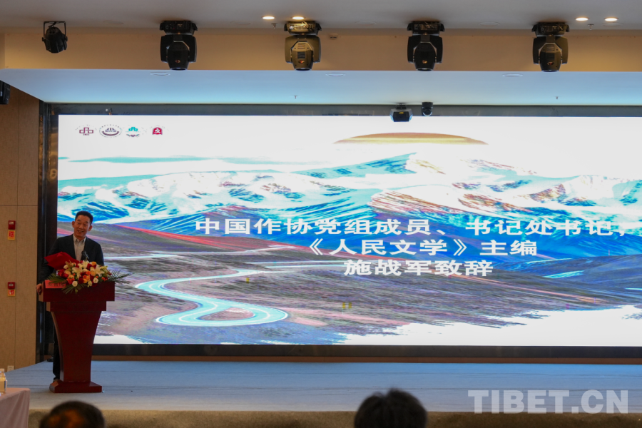 圖為長詩《喜馬拉雅》作者,第八屆魯迅文學(xué)獎獲得者、西藏自治區(qū)文聯(lián)副主席陳人杰致辭 攝影:邊子捷