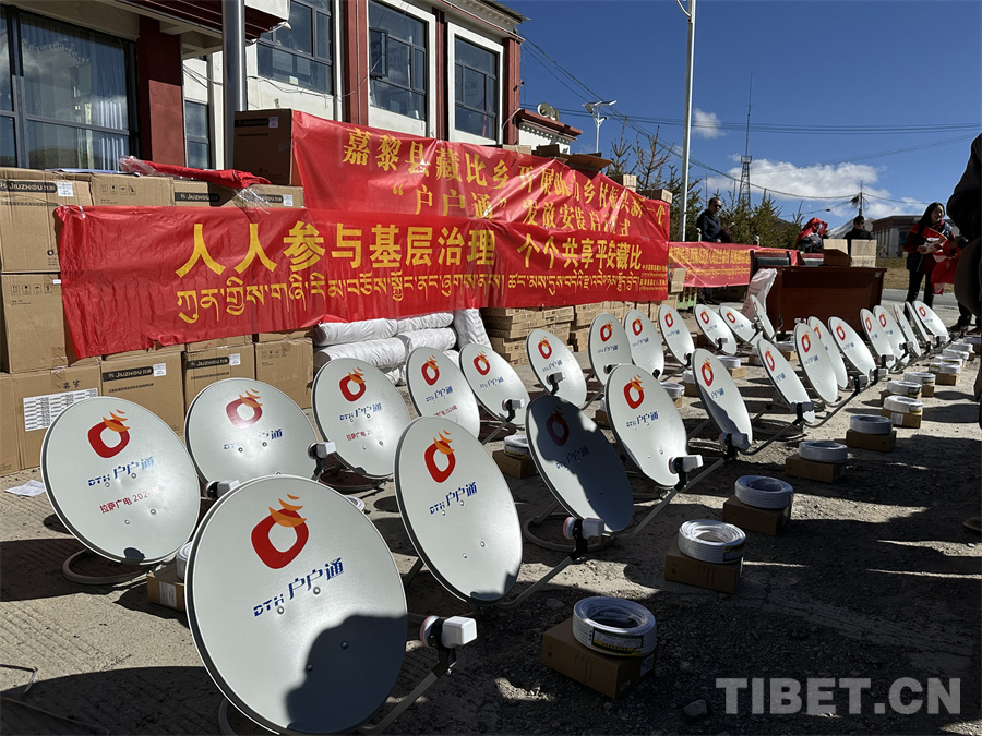 圖為藏比鄉(xiāng)“戶戶通”設(shè)備發(fā)放儀式現(xiàn)場(chǎng)