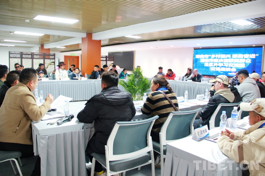 圖為10月22日,來自西藏自治區(qū)那曲市第三屆“鄉(xiāng)村振興 那曲奮進(jìn)”活動市級決賽第一名獲獎群眾代表區(qū)外學(xué)習(xí)交流團(tuán)抵達(dá)住地后,與中國藏學(xué)研究中心專家們進(jìn)行交流座談 攝影:劉莉