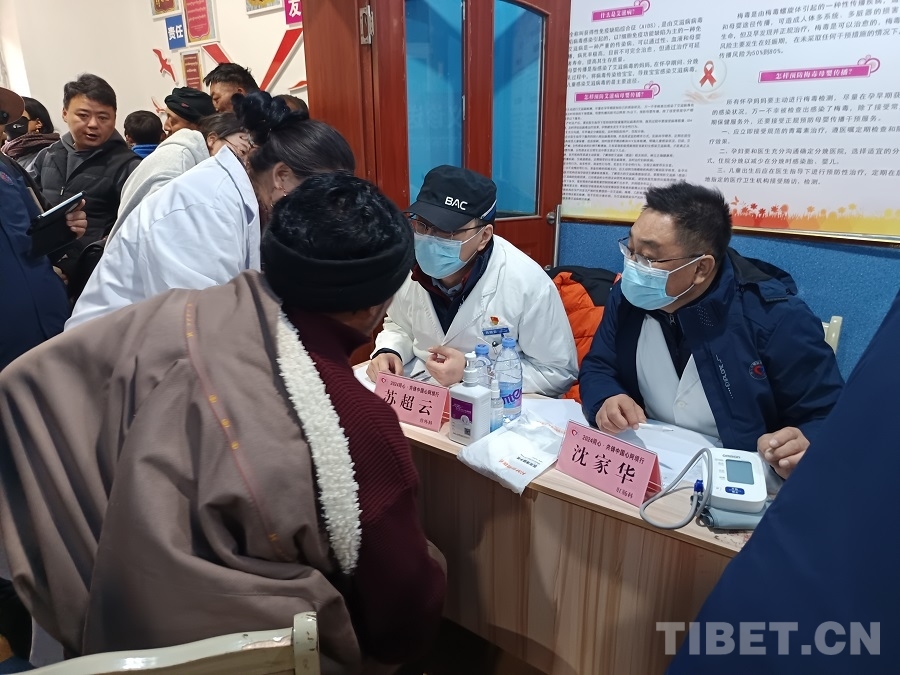 圖為航天總醫(yī)院肛腸科外科專家沈家華、普外科專家蘇超云為當?shù)厝罕娍丛\ 攝影:賈春玲