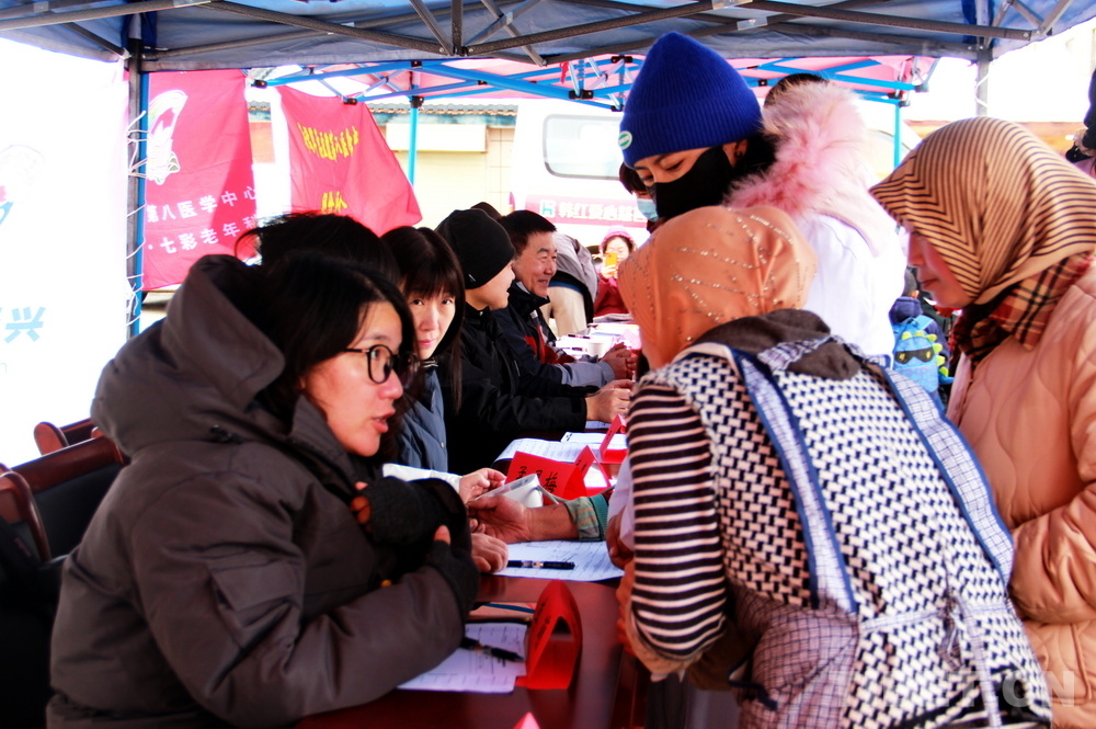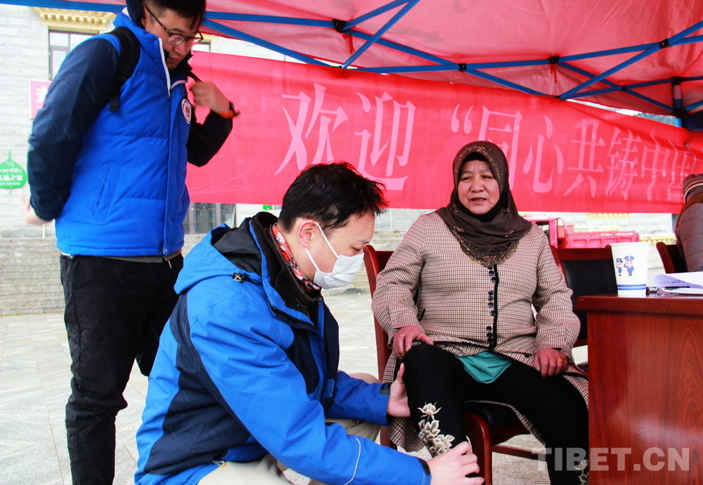 高原的大雪天,在室外即便來回走動也感覺格外寒冷。前來問診的患者絡(luò)繹不絕,醫(yī)務(wù)志愿者們堅守崗位,身披雪花,腳踩積雪,在翻譯的幫助下不停接診,一坐就是大半天。有的醫(yī)務(wù)志愿者專心接診,渾然不知衣服上已經(jīng)積雪;有的醫(yī)務(wù)志愿者發(fā)現(xiàn)患者不太理解疾病的分科,就同時擔(dān)起了分診工作;有的醫(yī)務(wù)志愿者自身高反強(qiáng)烈,吸著氧也要堅持接診……