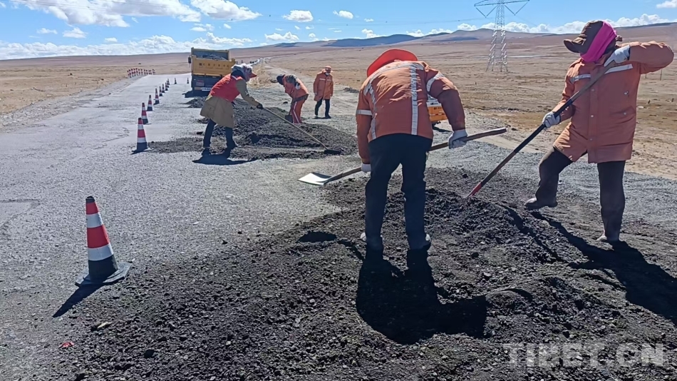 受低溫限制,唐古拉山路段的油路養(yǎng)護(hù)季節(jié)性非常強(qiáng),每年的5至10月是養(yǎng)護(hù)的黃金時(shí)間。為了能在有限的時(shí)間內(nèi)更好地養(yǎng)好公路,每年這個(gè)季節(jié),我和工友們都要在凌晨四五點(diǎn)出發(fā),一絲不茍地進(jìn)行日常巡查,對(duì)破損的路面進(jìn)行及時(shí)修補(bǔ)。每天工作超過(guò)十個(gè)小時(shí),餓了吃些糌粑,渴了喝點(diǎn)酥油茶,累了就靠在車(chē)上休息一會(huì)兒。春天,我們處理路面裂縫;夏天,我們清理塌方;冬天,我們與冰雪戰(zhàn)斗。我們?nèi)硇耐度?,用青春和汗水守護(hù)這條公路,確保這條至關(guān)重要的運(yùn)輸動(dòng)脈能夠抵御極端惡劣氣候的考驗(yàn),讓每一輛過(guò)往車(chē)輛都能安全順暢通行。