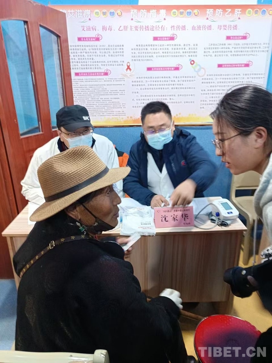 圖為中國(guó)康復(fù)研究中心普外科專家范榮福為當(dāng)?shù)厝罕娍丛\ 攝影:賈春玲