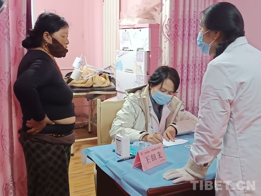 圖為航天總醫(yī)院婦產(chǎn)科專家王細(xì)先為當(dāng)?shù)厝罕娍丛\ 攝影:賈春玲