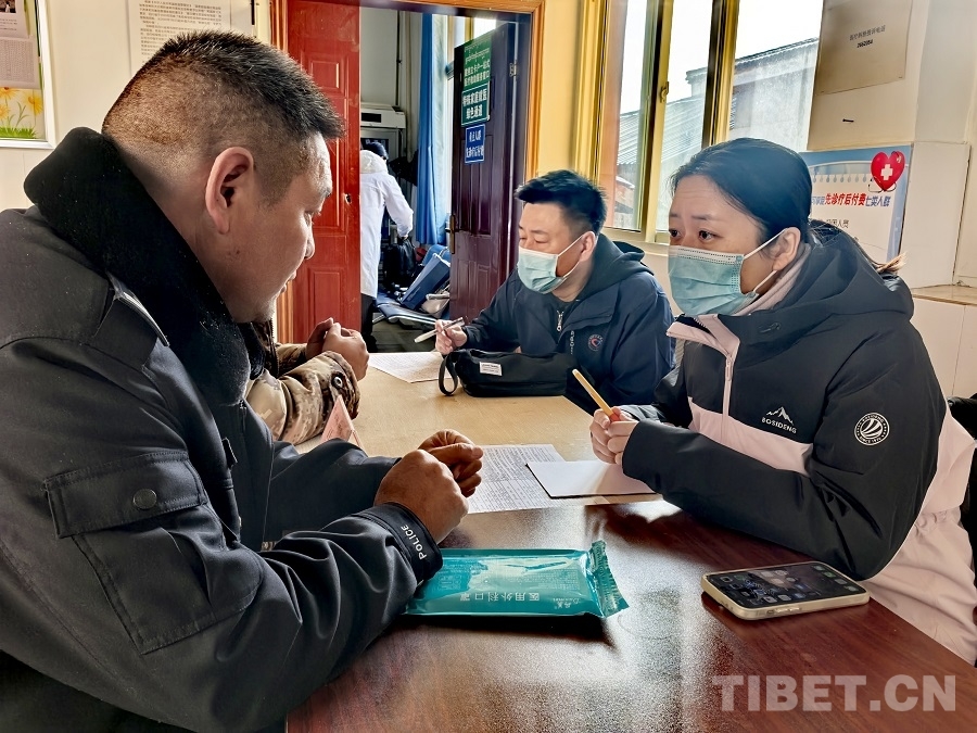圖為當(dāng)?shù)蒯t(yī)護(hù)人員為群眾現(xiàn)場(chǎng)翻譯 攝影:賈春玲