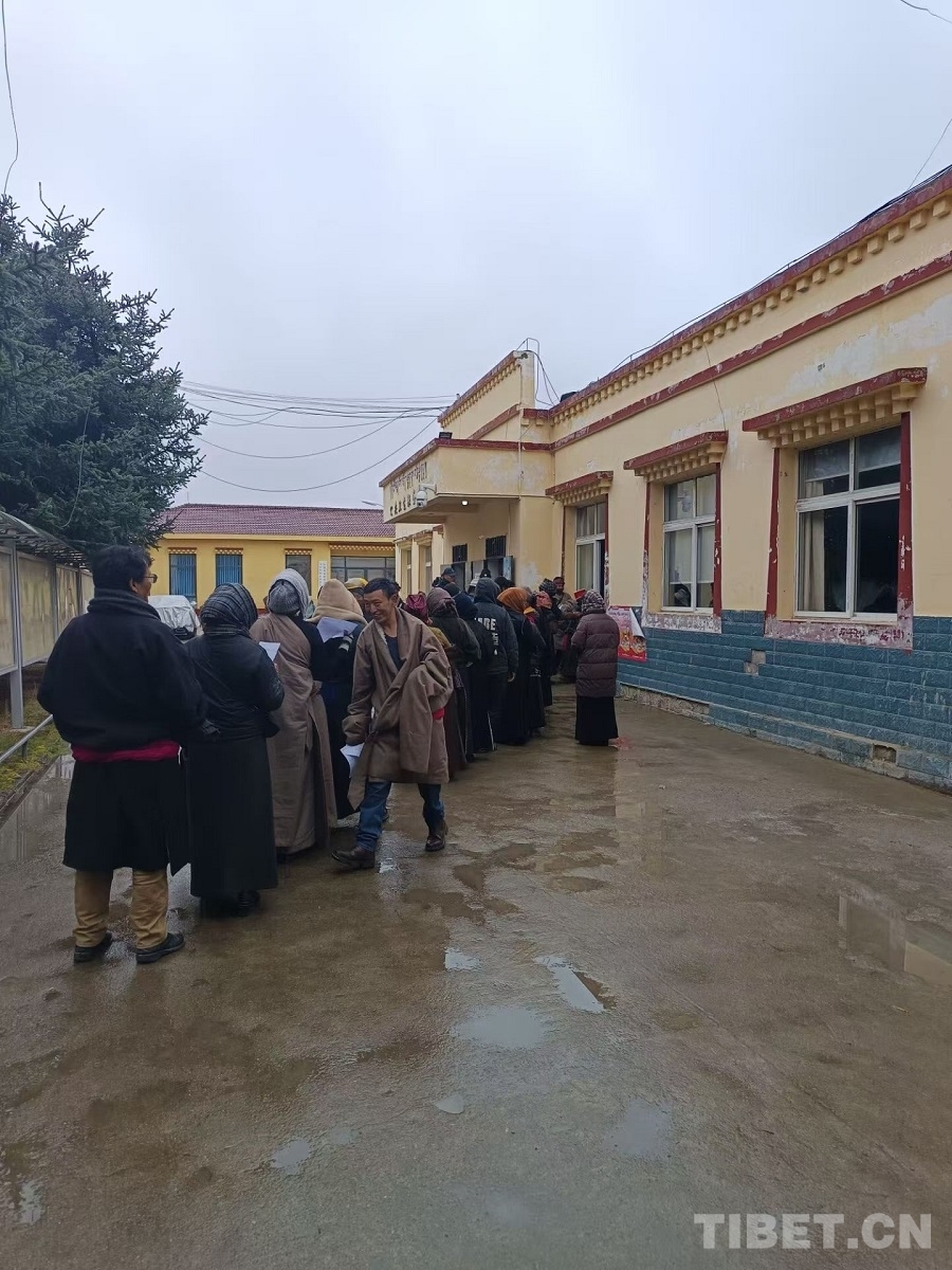 圖為當(dāng)?shù)厝罕娭刃蚓慌抨?duì)領(lǐng)取捐贈(zèng)藥品 攝影:賈春玲