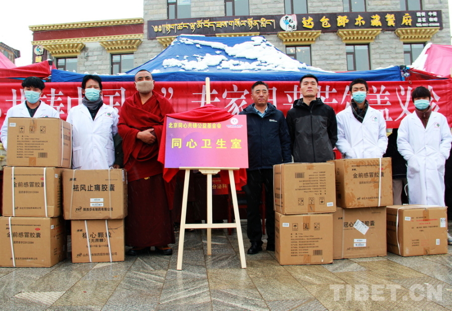 為使若爾蓋郎木寺“同心衛(wèi)生室”運(yùn)作更加順利,北京同心共鑄公益基金會向該衛(wèi)生室捐助了價(jià)值5萬元的藥品。(中國西藏網(wǎng) 記者/劉莉)