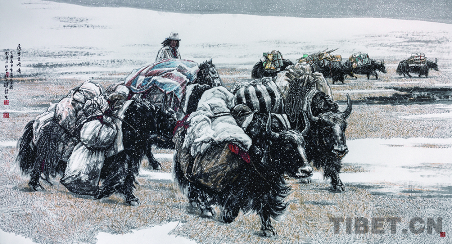 古錦其經(jīng)過長期地深入生活,從真切的感受中醞釀、發(fā)酵并進入創(chuàng)作實踐,再從作品的經(jīng)驗體會重新回到生活中去檢驗、體察、對比,再深入,為此反復輪回。他通過寫實的描繪手法、濃重的寫意墨色和有力的筆觸刻畫出生活在那塊土地上人們的真實場景,作品呈現(xiàn)其特色的藝術風格和深刻的精神內(nèi)涵,每一幅作品都以濃重飽滿的筆墨構筑起整幅畫面的主體造型,猶如搭建起一座堅實聳立的筆墨高峰,使薄薄的宣紙承載著東方美學的厚重。(中國西藏網(wǎng) 通訊員/趙鵬)