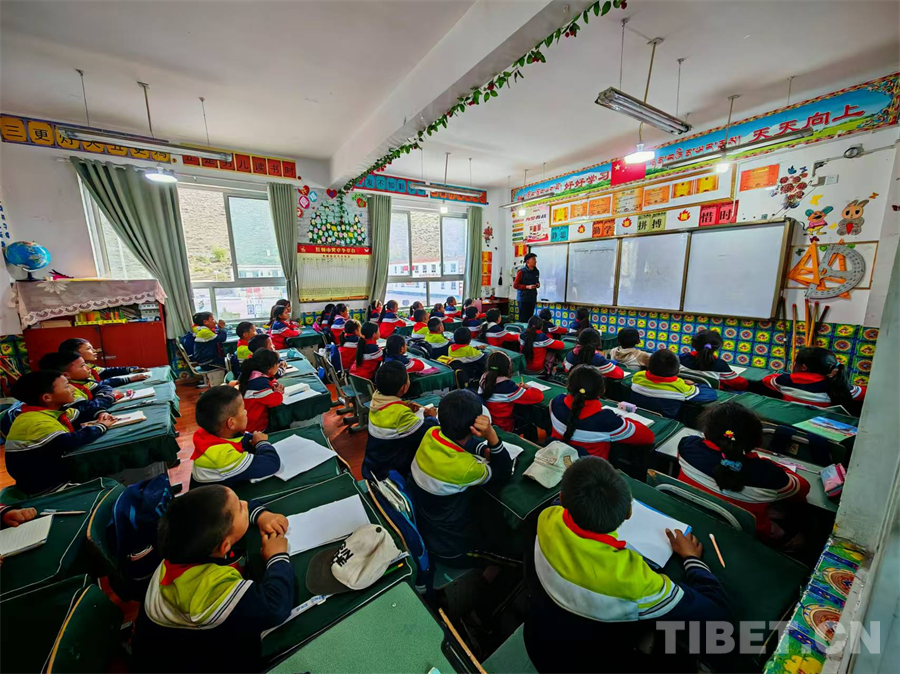 圖為洛隆縣俄西鄉(xiāng)第一小學(xué)的學(xué)生們正在認(rèn)真聽老師講課