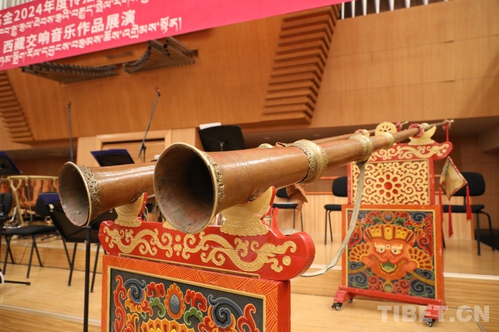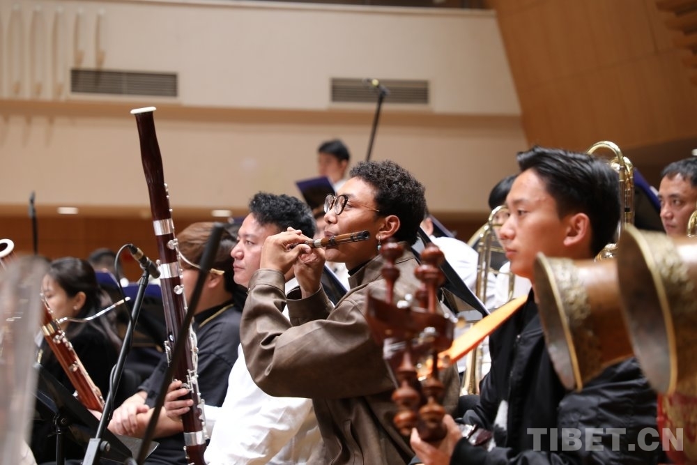 演出展示了合奏、協(xié)奏、獨奏等多種演奏形式,還加入了西藏傳統(tǒng)樂器演奏,如扎木念、藏大號等藏族傳統(tǒng)樂器,依托原創(chuàng)音樂、紅色音樂,既保留了西藏音樂的風格,又融入了現代音樂的元素,展現了西藏音樂的多元性和創(chuàng)新性以及交響樂的豐富表現力。
