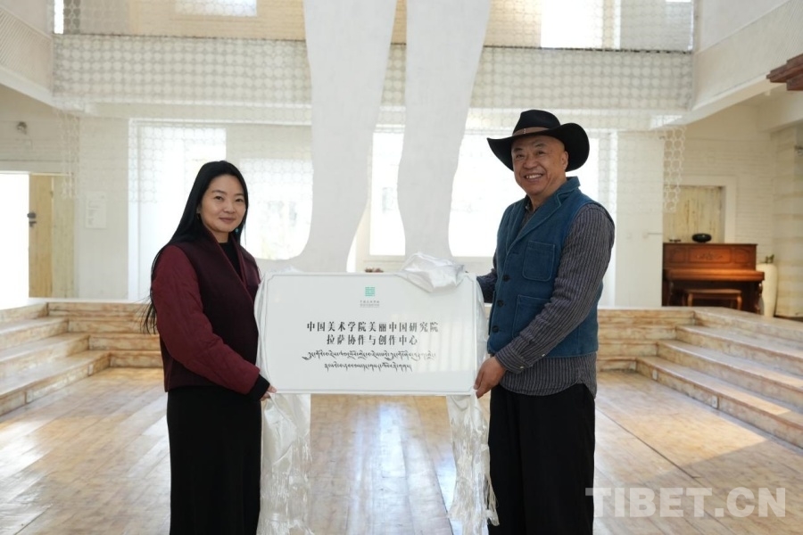 中國(guó)西藏網(wǎng)訊 11月14日,中國(guó)美術(shù)學(xué)院美麗中國(guó)研究院拉薩協(xié)作與創(chuàng)作中心掛牌儀式在介觀藝術(shù)中心舉行,中國(guó)美術(shù)學(xué)院美麗中國(guó)研究院副院長(zhǎng)汪莎與介觀藝術(shù)中心創(chuàng)始人徐應(yīng)龍共同揭牌。
