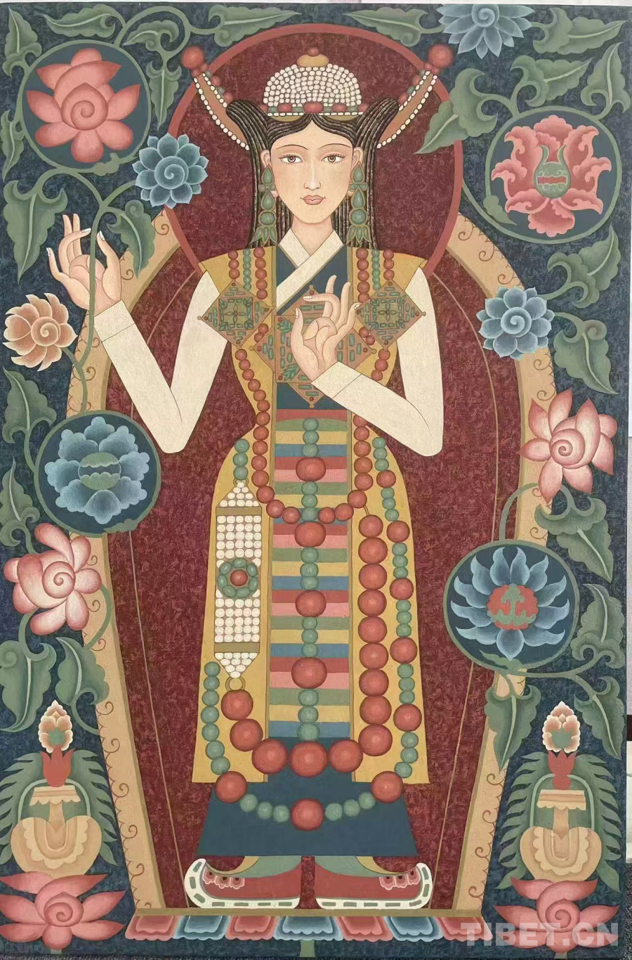 本屆西藏精品唐卡展以“傳承·創(chuàng)新·和諧”為主題,共展出60幅唐卡作品和20幅當代布面重彩作品,作品創(chuàng)作題材廣泛、風格流派多樣,藝術樣式豐富,不僅展現(xiàn)了傳統(tǒng)唐卡的精湛技藝,也融入了現(xiàn)代元素,展現(xiàn)了藝術家們對傳統(tǒng)與現(xiàn)代的深刻理解和獨特見解。這種多樣化、多元化的藝術展示,不僅使作品具有了更為豐富的表現(xiàn)力和視覺沖擊力,同時也為西藏當代唐卡藝術創(chuàng)作注入了新的活力,為西藏當代唐卡藝術多元發(fā)展奠定了良好的基礎。