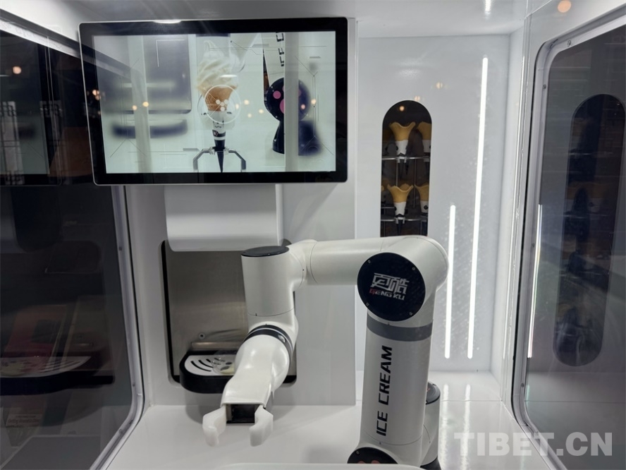 圖為機(jī)器人冰淇淋,通過(guò)掃碼支付可以在幾十秒內(nèi)獲得一個(gè)完整的冰淇淋 攝影:王妍丹