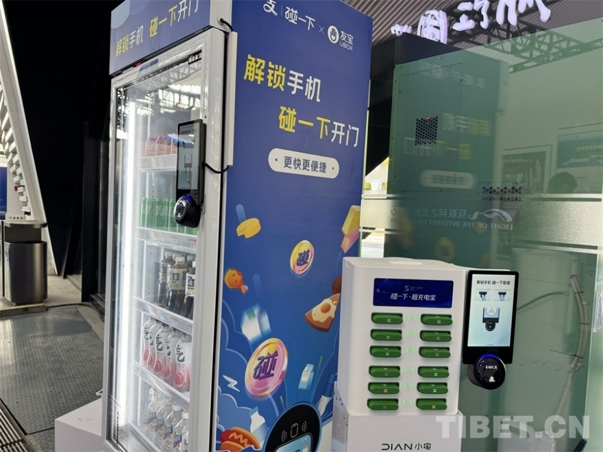 圖為“碰一下”應(yīng)用支付的設(shè)備,不僅可以簡(jiǎn)單方便借取充電寶,還可以快速購(gòu)買商品 攝影:王妍丹