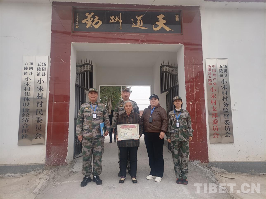 圖為“我為烈士來尋親”“安陽市退役軍人長城志愿服務總隊”烈士尋親工作組與申克玉烈士親屬合影