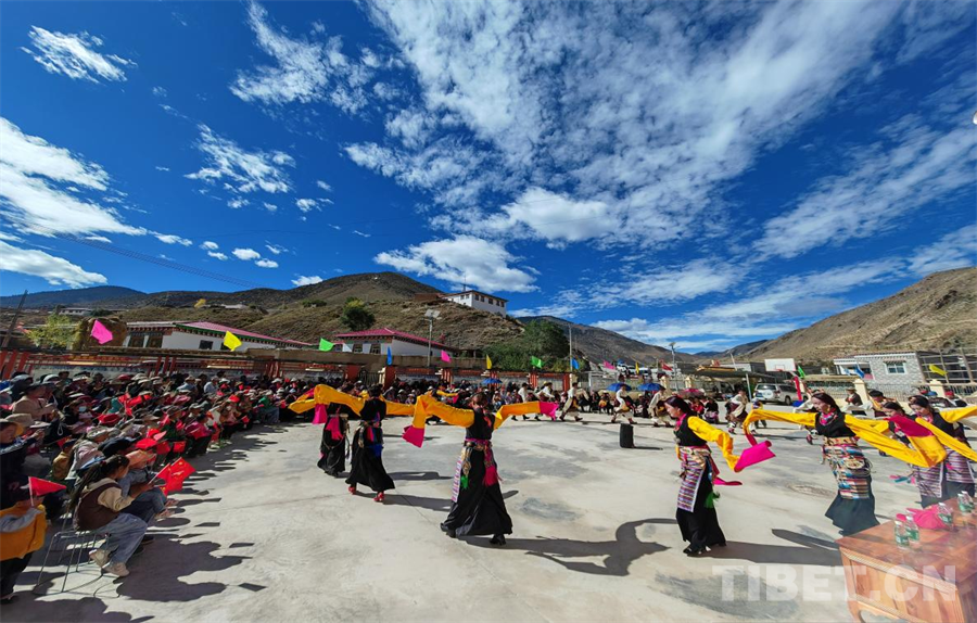 圖為洛隆縣碩督鎮(zhèn)民族團結廣場開展紀念洛隆解放74周年文藝表演活動