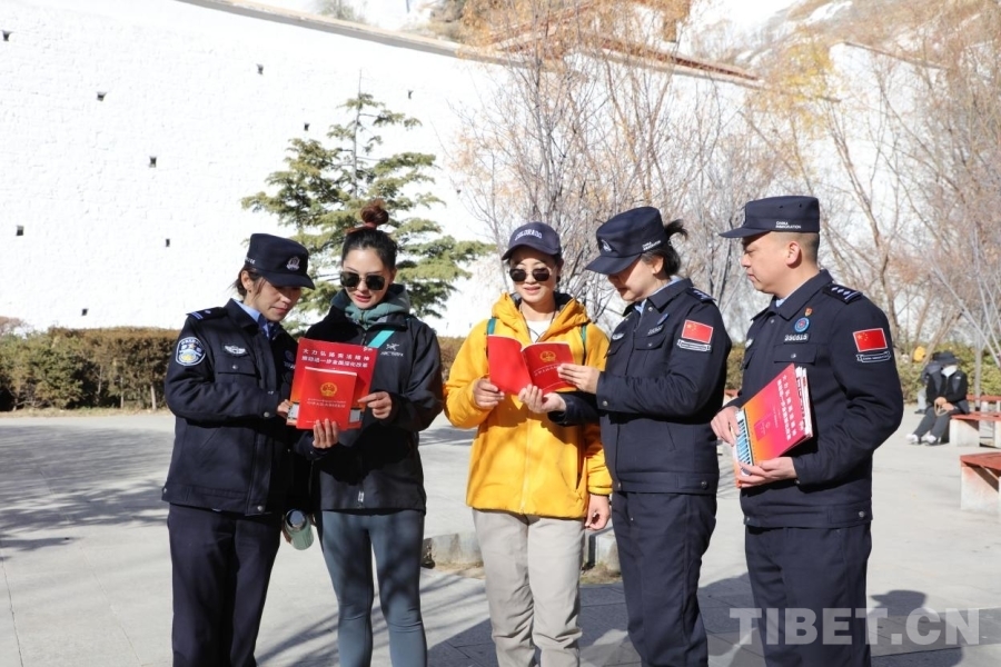 圖為西藏邊檢總站執(zhí)法調(diào)查支隊(duì)向拉薩市民宣傳憲法知識(shí)