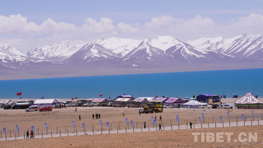 圖為納木錯開湖日,遠處雪山、湖水、帳篷等融為一體的美麗“畫卷”。攝影:德吉卓瑪