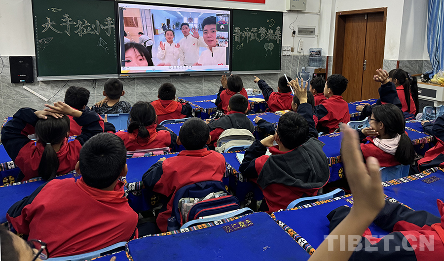 “我的家在西藏墨脫,你家在哪呢?你有沒有吃過藏面、石鍋雞,我們這里還有甜茶,你有機會一定要找我玩,我?guī)愠晕覀冞@里的美食哦!”“這位姐姐也喜歡閱讀,以后我就有可以一起分享書籍的好伙伴了?!苯眨谖鞑亓种ツ摽h完全小學(xué)的校園里,發(fā)生了一件令人興奮的事情——孩子們終于跟山西師范大學(xué)的哥哥姐姐們連線啦!伴隨著孩子們的歡聲笑語,山西師范大學(xué)發(fā)起的“大手拉小手,晉師筑夢格?!毕盗谢顒右簿痛烁嬉欢温洹?/p>