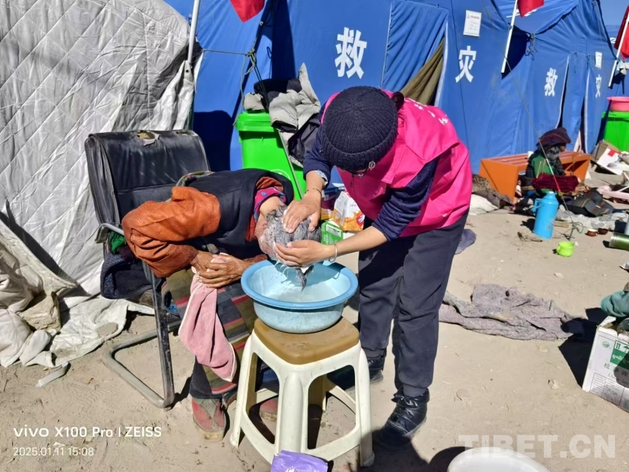“我們當(dāng)時的想法就是把老人和孩子集中安置起來,村中的年輕人本來就不多,我們把這兩類人進行集中照料,年輕人就可以正常開展生產(chǎn)和重建工作?!?6歲的次仁吉巴是村中的婦聯(lián)主席兼駐村工作隊員,她在定結(jié)縣薩爾鄉(xiāng)的家在本次地震中也遭受到了損害,但作為村中的一名黨員干部,她選擇在村民最需要她的時候留在白堆村,幫助受災(zāi)群眾進行安置。