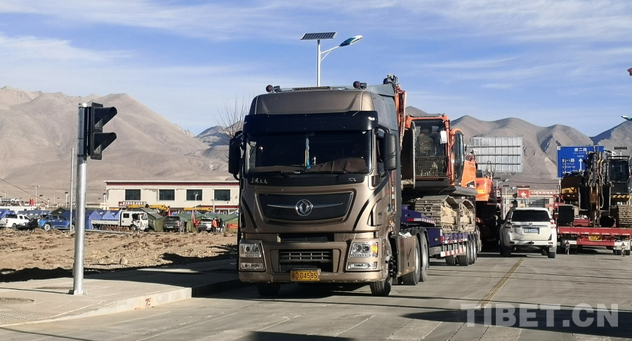 圖為卡車將大量挖掘機(jī)等工程機(jī)械運(yùn)往西藏自治區(qū)日喀則市定日縣 攝影:劉莉