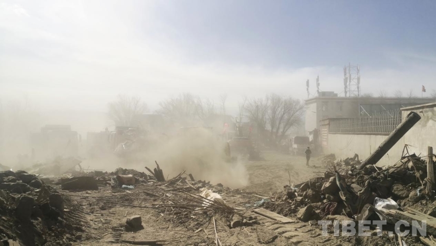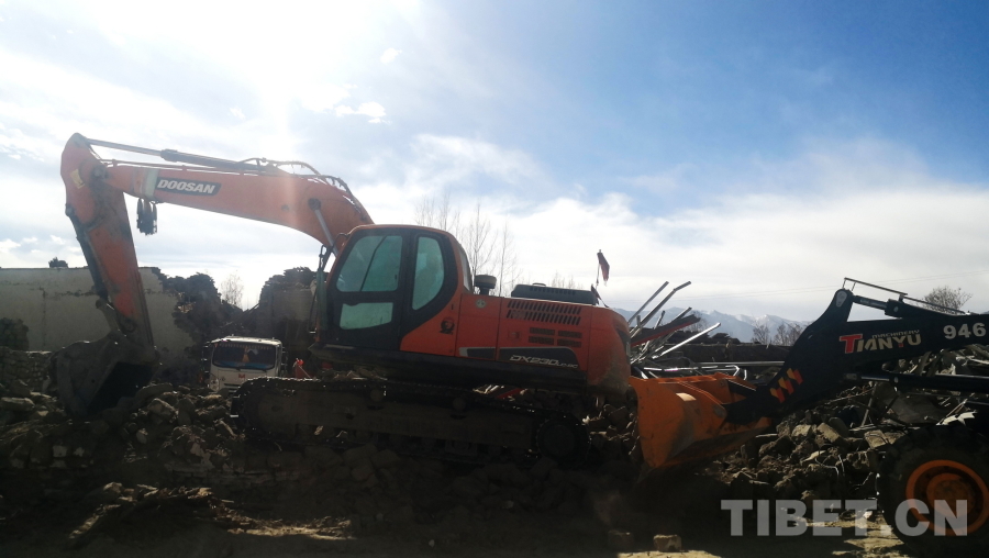 圖為地震重災(zāi)區(qū)西藏自治區(qū)日喀則市定日縣長所鄉(xiāng)除險(xiǎn)現(xiàn)場,畫面中右側(cè)的危房、建筑已完成除險(xiǎn) 攝影:劉莉
