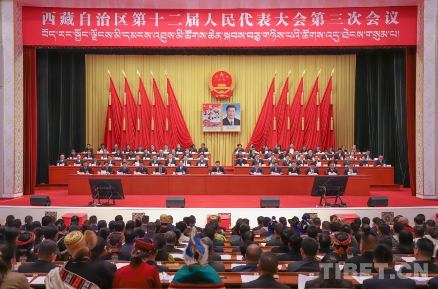 圖為西藏自治區(qū)十二屆人大三次會議舉行第三次全體會議