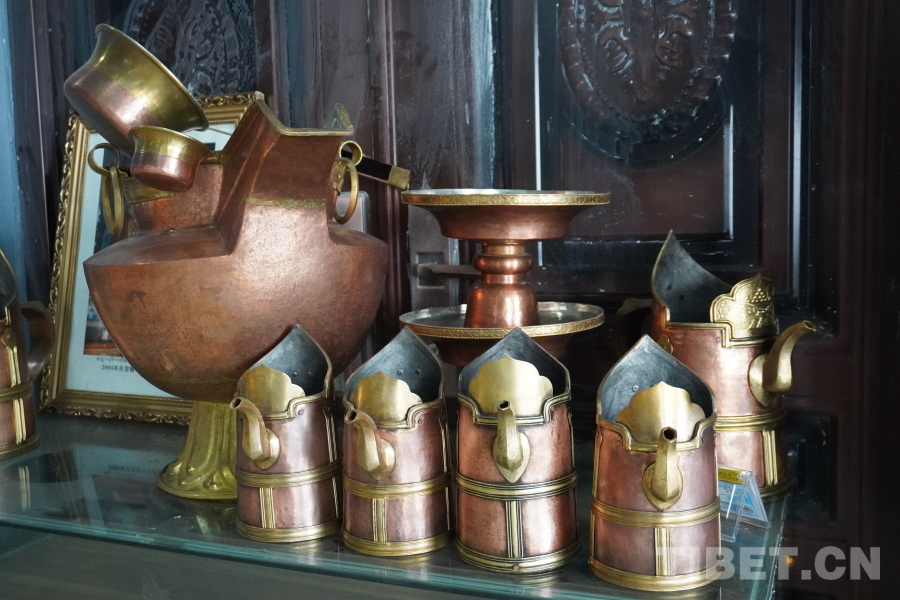 此外,孜東銅器歷代傳承人積極參與文物修復(fù)工作,以匠心之手,撫觸歷史的痕跡。2012年起,列旦桑布和工人們一起參與了西藏自治區(qū)博物館、羅布林卡,以及薩迦寺等單位及寺院的銅器文物維修工作。讓沉睡的千余件銅器文物在時光中蘇醒,重現(xiàn)了西藏輝煌滄桑的歷史歲月,用愛與責(zé)任守護(hù)著中華民族的寶貴遺產(chǎn)。