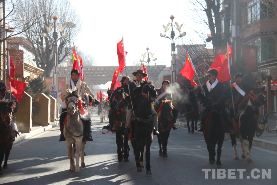 縣城新時(shí)代文明實(shí)踐廣場(chǎng)上擺放著“中華民族一家親,共度中國(guó)吉祥年”的藏式切瑪盒,馬術(shù)巡游隊(duì)伍繞行象征幸福安康的切瑪盒,祈愿風(fēng)調(diào)雨順、五谷豐登,祝福祖國(guó)繁榮昌盛。