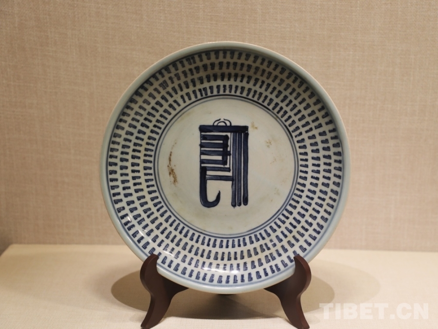 圖為明青花梵文盤 攝影:王茜