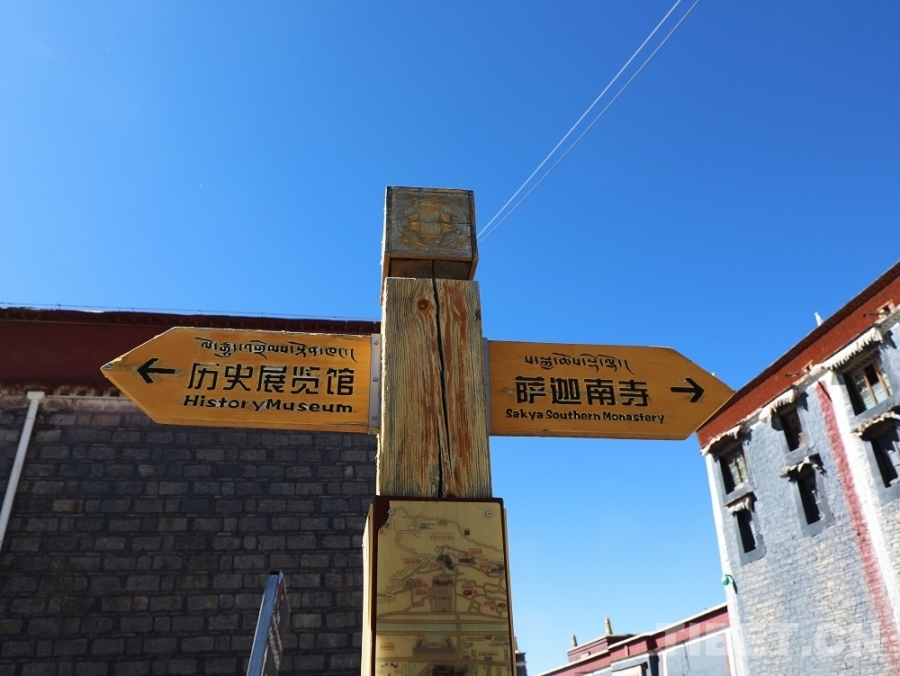 西藏薩迦歷史文化展覽館距離薩迦寺不足百米。圖為路標(biāo) 攝影:王茜