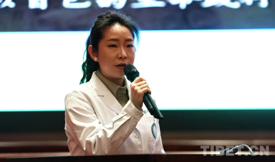 圖為四川省德陽市人民醫(yī)院宣傳部干事彭曉萌講述“范天勇援藏醫(yī)療服務(wù)隊(duì)”的援藏故事 攝影:劉莉