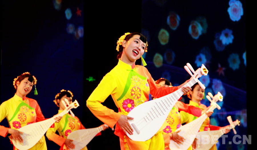 圖為“在云端·我的援藏故事”宣傳活動(dòng)在四川省阿壩州九寨溝縣開展宣講活動(dòng)現(xiàn)場(chǎng),演員們以九寨溝縣地方傳統(tǒng)音樂、國(guó)家級(jí)非物質(zhì)文化遺產(chǎn)南坪曲子中的“采花”調(diào)創(chuàng)作的《盼紅軍》表達(dá)對(duì)援藏干部人才的敬意 攝影:劉莉
