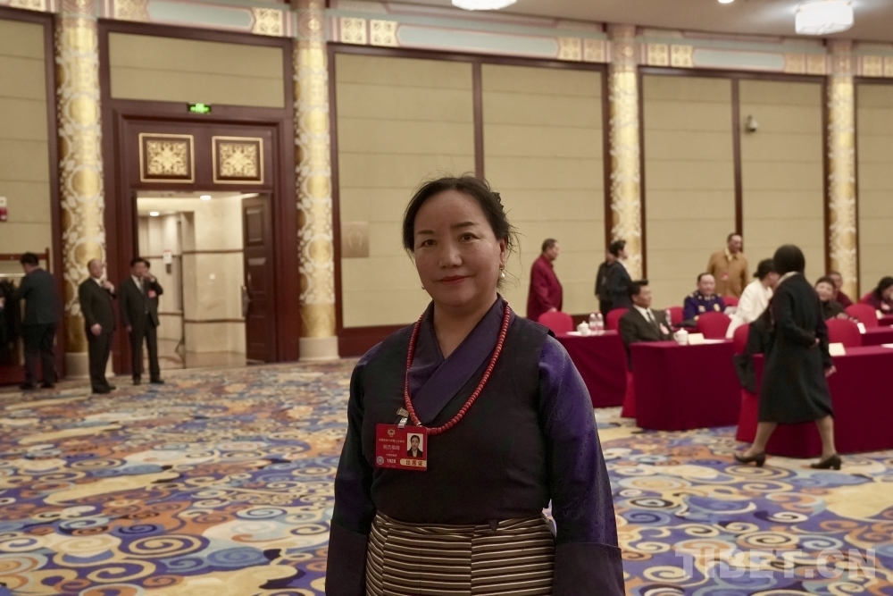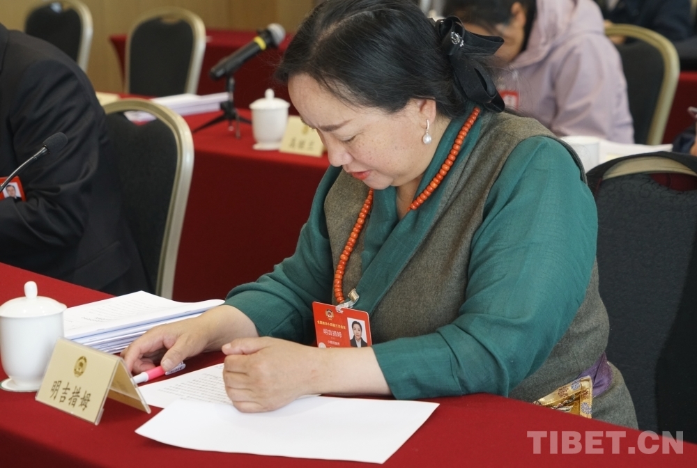圖為明吉措姆在全國政協(xié)十四屆三次會議民族界小組會議上發(fā)言攝影:楊眉笑