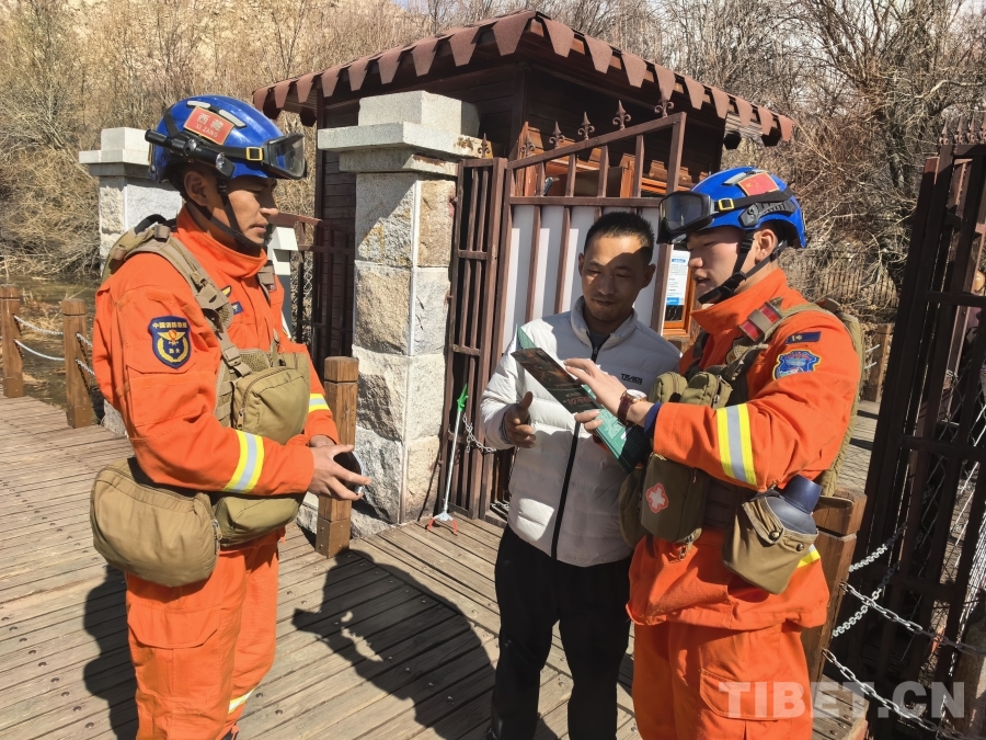 圖為西藏森林消防總隊(duì)特勤大隊(duì)指戰(zhàn)員在拉魯濕地向來往市民游客普及防火知識