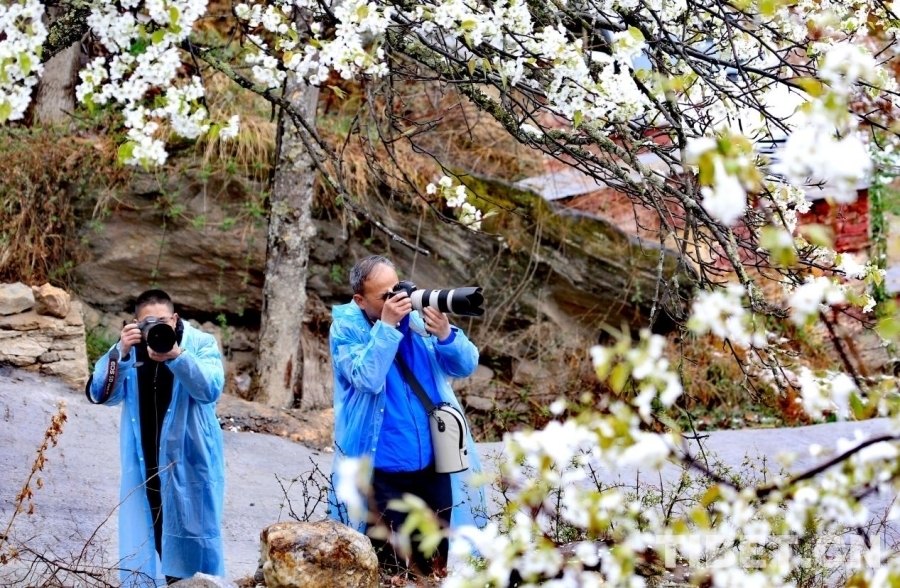 圖為攝影師在拍攝梨花