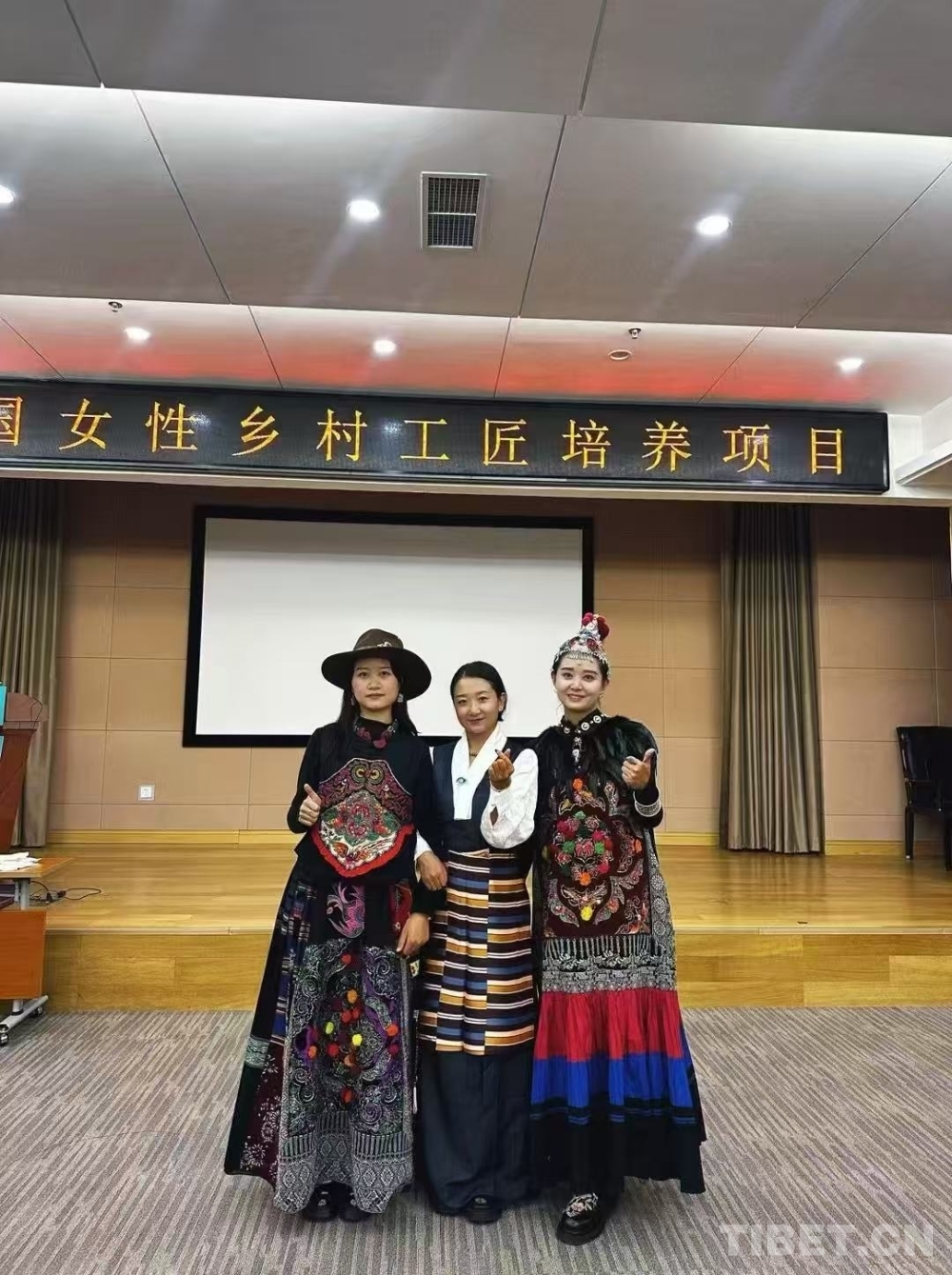 圖為仁青卓瑪(中)參加“中國女性鄉(xiāng)村公匠培養(yǎng)項目”留影
