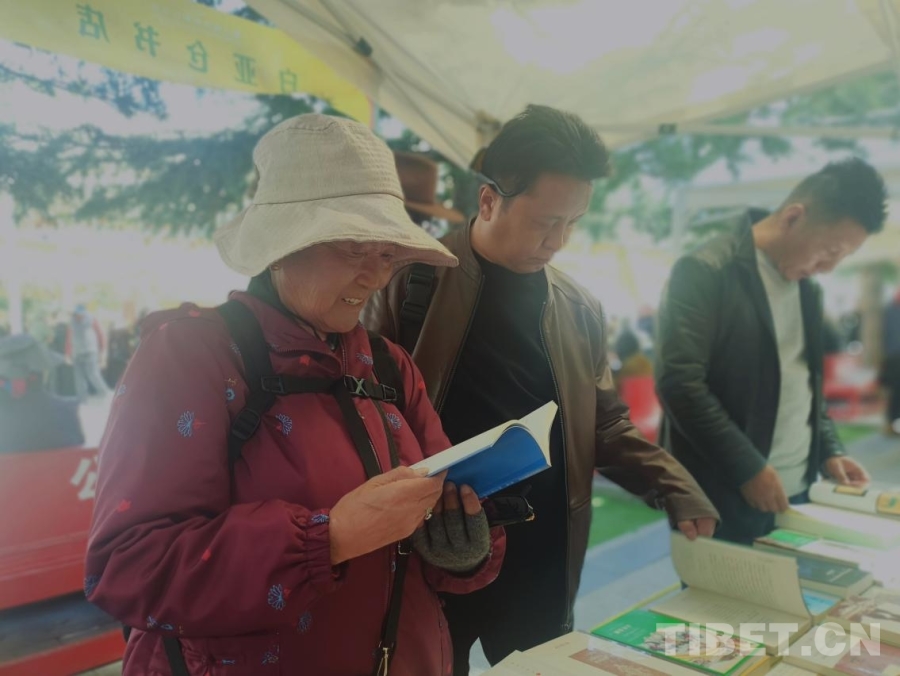 圖為4月19日,第二屆“拉薩春日書會(huì)”宗角祿康公園主會(huì)場(chǎng)內(nèi),市民在書攤前翻閱書籍 攝影:趙釗