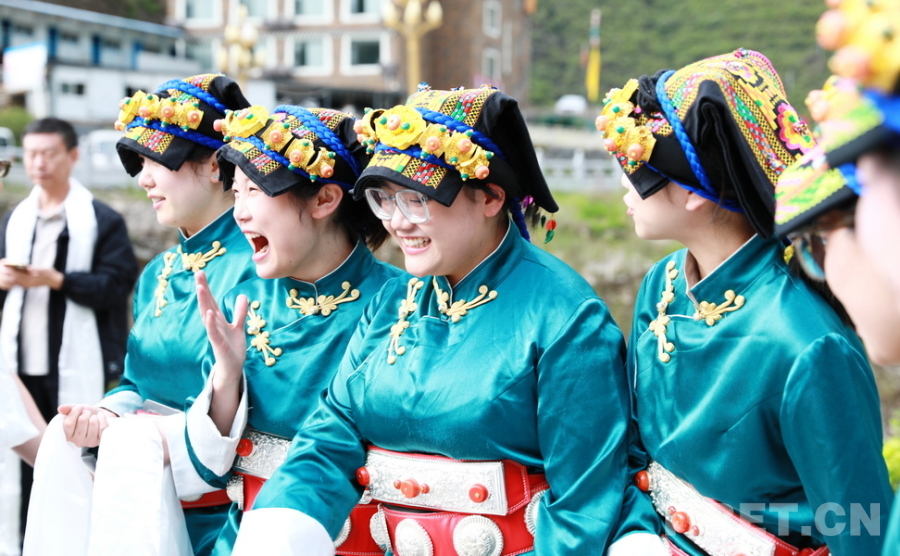 圖為身著嘉絨藏族盛裝的四川省阿壩州女孩們迎接“同心·共鑄中國(guó)心”大型公益活動(dòng)醫(yī)務(wù)志愿者們的到來(lái) 攝影:劉莉