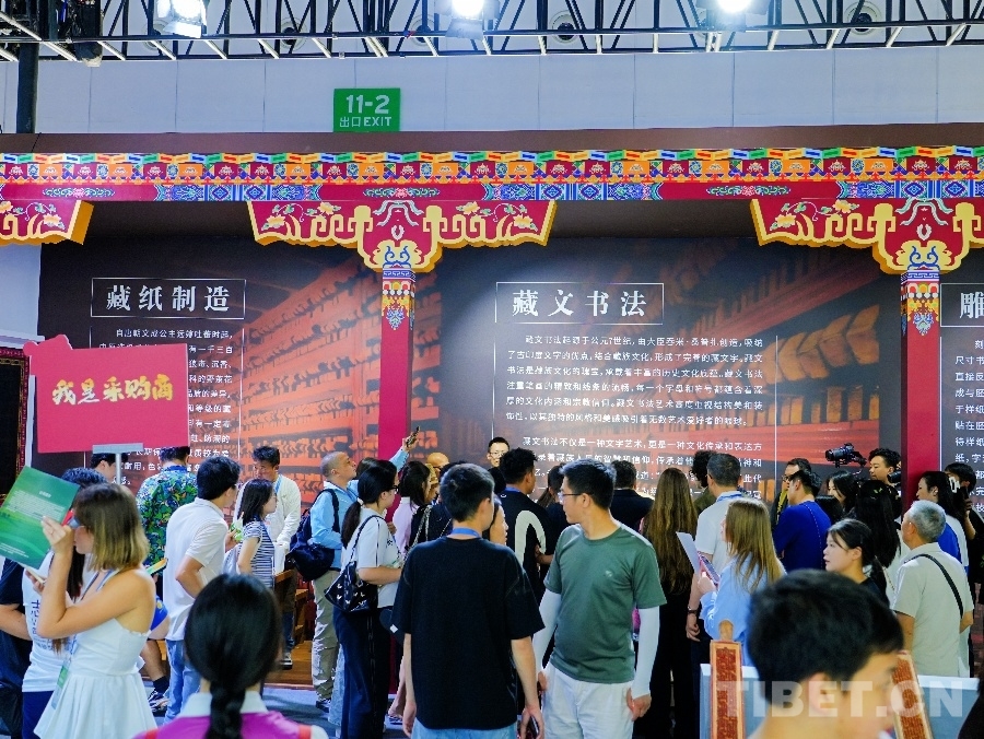圖為博覽會(huì)上藏族雕版印刷體驗(yàn)區(qū)