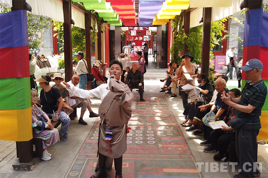 圖為那曲歌手拉日多布在中華民族共同體體驗(yàn)館內(nèi)一展歌喉 攝影:楊月云