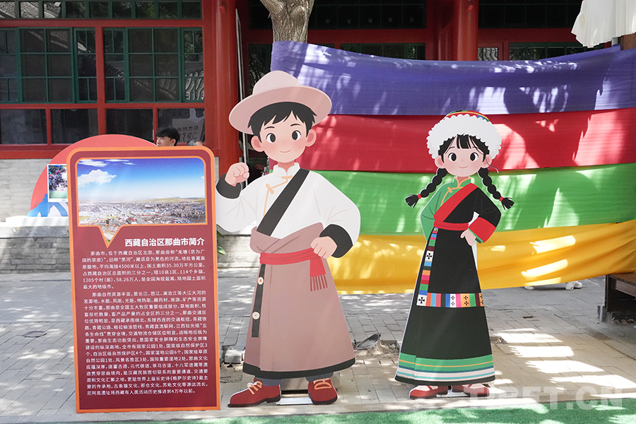 圖為中華民族共同體體驗(yàn)館內(nèi),那曲市輪展現(xiàn)場的人形立牌 攝影:周晶