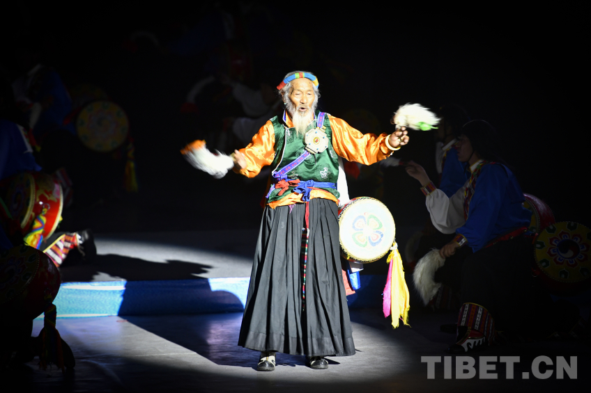 圖為山南卓舞《吉祥卓舞》,81歲的卓舞國家級代表性傳承人尼瑪老人登臺表演 攝影:趙振宇