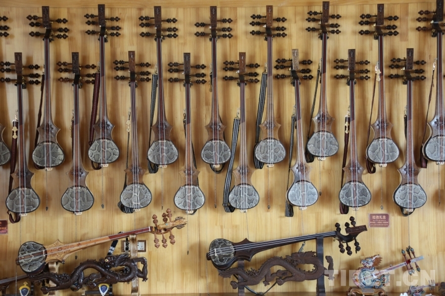 作為“堆諧之鄉(xiāng)”拉孜縣的代表性樂(lè)器,扎念琴制作已有數(shù)百年歷史。合作社負(fù)責(zé)人頓加介紹,一把純手工扎念琴需選用楊木做共鳴箱、花梨木制琴桿,經(jīng)過(guò)刨削、雕鏤、蒙皮等20余道工序,一個(gè)人耗時(shí)6天左右方能完成?!扒兕^雕馬象征吉祥,背面‘巴絡(luò)'凸紋既美觀又防滑,這些都是祖輩傳下的智慧?!比缃瘢@項(xiàng)非遺技藝通過(guò)“致富帶頭人+合作社+農(nóng)戶”模式,年生產(chǎn)扎念琴超500把,帶動(dòng)社員人均年收入達(dá)4.5萬(wàn)元。
