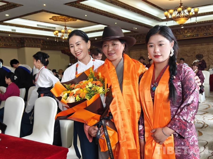 圖為活動現(xiàn)場格桑措母女收到學(xué)員的鮮花和哈達