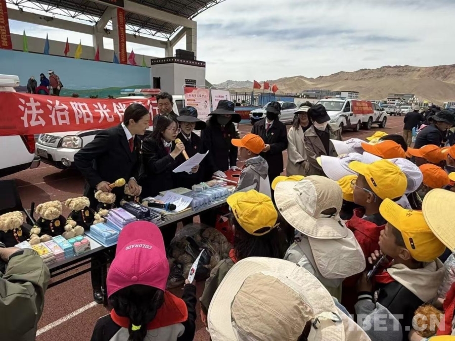 圖為今年5月底,維權(quán)工作站走進阿里地區(qū)陜西實驗學(xué)校開展普法宣傳活動現(xiàn)場 來源:阿里法院微信公眾號